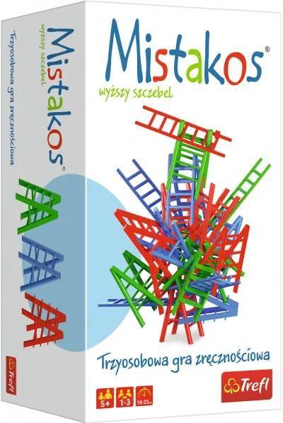 Mistakos z drabinami w trzech kolorachKultowa gra zrcznościowa Mistakos Krzesła w wersji dla 3 osób zachwyci zarówno dzieci jak i starszych graczy! Buduj wraz z przeciwnikami imponująca konstrukcj z krzeseł i w zależności od wariantu rozgrywki jak najszybciej pozbądź si swoich krzesełek lub zdobądź jak najmniejszą ilość punktów karnychZasady gry są proste ale takie budowanie to nie lada wyzwanie! Oparcia krzeseł mają rozmaite kształty ? wykorzystaj ich różnorodność i pokonaj przeciwników! Pozbywaj si krzeseł i pamitaj aby przemyśleć każdy ruch tak by wieża si nie rozpadła! Dobra zabawa gwarantowana!