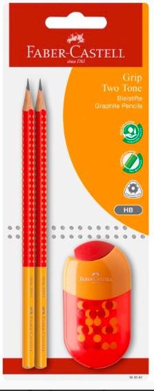 Zestaw ołówków grafitowych Grip 2001 Two Tone Faber-Castell 2 szt. mix kolorów (jasnozielono-zielony, pomarańczowo-czerwony, jasnoniebiesko-niebieski, jasnorózowo-różowy) z pasującą temperówką z gumką w opakowaniu blistrowym. Nawet w czasach zdominowanych przez komputery, telefony i internet, ołówek wciąż pozostaje nieodłącznym towarzyszem codzienności. To doskonałe w swojej prostocie narzędzie. Ergonomiczny trójkątny kształt i charakterystyczna dla tej serii opatentowana strefa Grip z małymi, antypoślizgowymi punktami zapewniają wysoki komfort użytkowania i niemęczące, wygodne pisanie i szkicowanie. Odpowiednie również dla leworęcznych. Z odpornym na pękanie grafitem o stopniu twardości HB, dzięki bezpiecznemu procesowi wiązania (SV). Wykonane z certyfikowanego drewna pochodzącego ze zrównoważonego i odpowiedzialnie zarządzanego leśnictwa. Powierzchnie pokryte lakierem na bazie wody ? bezpiecznym dla środowiska i zdrowia dzieci. Gumka w temperówce bez zawartości PVC. Dostępne w różnych kolorach i różnych zestawach.