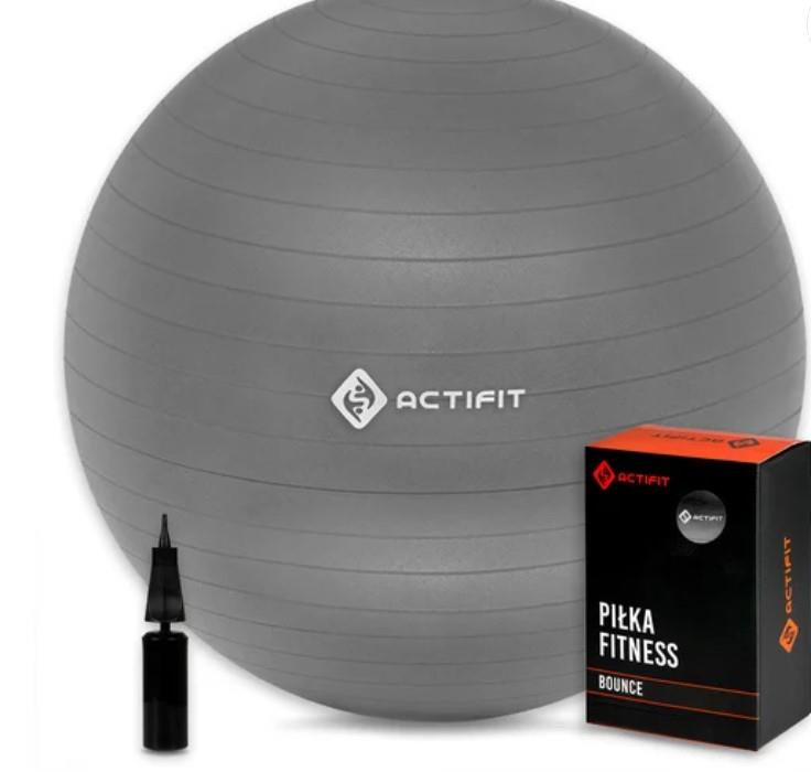 ACTIFIT, Piłka gimnastyczna Bounce z pompką, 65cm, szaraPiłka fitness przeznaczona jest zarówno do celów relaksacyjnych, jak i zdrowotnych. Odpowiednio przeprowadzony trening rozluźni oraz wzmocni mięśnie. Ćwiczenia z tą piłką pomogą też zmniejszyć napięcie mięśni i stawów. Do zestawu dołączona jest pompka oraz instrukcja z zestawem ćwiczeń.