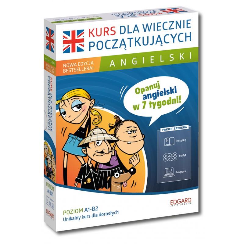 Unikalny kurs dla dorosłych 7xCD + książka + program multimedialnyDługa przerwa w nauce? Masz wrażenie, że połowa słówek wyleciała ci z głowy? Kolejny raz zaczynasz powtarzać materiał od podstaw? Chcesz swobodnie mówić po angielsku, ale wciąż wydaje ci się, że mało umiesz? Jeśli tak ? kurs dla wiecznie początkujących jest właśnie dla ciebie! W podręczniku znajdziesz materiał zaplanowany na 7 tygodni nauki, a także przydatny słowniczek angielsko-polski. Zróżnicowane lekcje, wzbogacone o nagrania profesjonalnych lektorów, i program komputerowy pozwalający utrwalić słownictwo i konstrukcje gramatyczne z lekcji sprawią, że wciągniesz się w naukę angielskiego. Dzięki interesującym tekstom poznasz kulturę brytyjską i aktualne problemy społeczne, a na koniec z zaskoczeniem odkryjesz, jak dużo już umiesz! W każdym tygodniu nauki poznasz:? przydatne słówka, zwroty, przykładowe zdania i dialogi,? porcję gramatyki dopasowaną do poziomu lekcji,? prawidłową wymowę dzięki nagraniom.