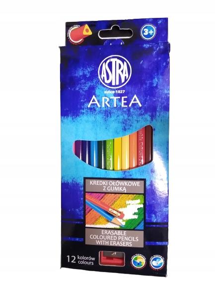 ASTRA KREDKI OŁÓWKOWE Z GUMKĄ 12 KOLORÓW+ TEMPERÓW
