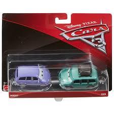 Nadjeżdżają ulubione samochody z filmu "Auta 3"! Te dwupaki to podwójna radość! W każdym dwupaku znajduje się dwóch bohaterów z niezapomnianych scen z filmu, a uzupełniającą atrakcją jest opakowanie z dekoracją przedstawiająca wybraną scenę. Baw się w odtwarzanie ulubionych scen!