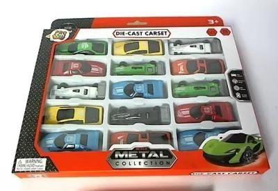 Zestaw autek metalowych wyposażony jest w 15 pojazdów sportowych i wyścigowych które są idealne do garaży i torów wyścigowych Samochodziki mają długość 65 cm i są wykonane z metalu dlatego są odporne na uszkodzenia Autka nie posiadają napdu