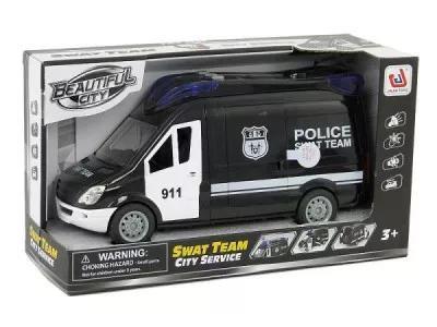 Auto policyjne, z otwieranymi drzwiami, efektami świetlnymi i dźwikowymiWymiary: 26x13x9cmBaterie: 2 x AA 1,5VWiek: 3+