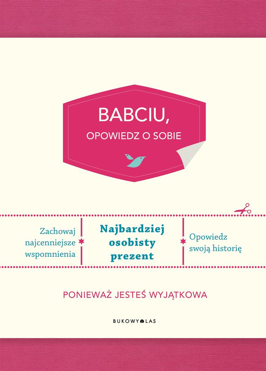 Podaruj tę książkę swojej babci, a wróci do ciebie pełna wspomnieńDając babci ten szczególny prezent, podarowujesz jej nie tylko pięknie wydany notes, ale przede wszystkim poczucie, że jest dla ciebie bardzo ważna. Z odpowiedzi na ciekawe, dowcipne i czasem zaskakujące pytania, dotyczące babci i jej życia, powstanie po wypełnieniu jedyna w swoim rodzaju, osobista historia.