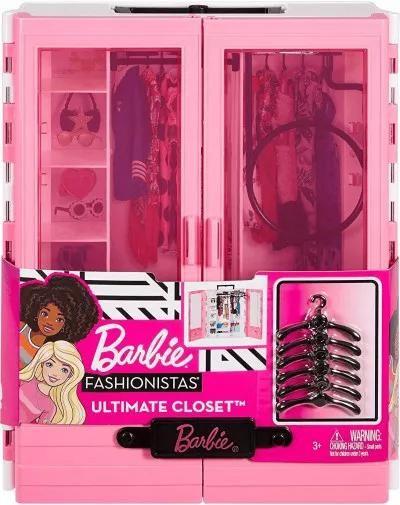 Wkrocz prosto do świata mody Szafa na ubranka Barbie posiada uchwyt dziki któremu łatwo ją przenosić Zaprojektowana w charakterystycznym stylu Barbieszafa na ubranka dla lalekwysoka jakość wykonaniaposiada podwójne przezroczyste drzwiw zestawie sześć wieszakówwyciągany duży okrągły wieszak uatrakcyjnia zabaw w przebierankiwspomaga rozwój wyobraźni