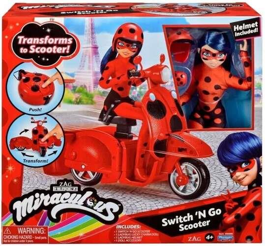 Zawartość zestawu: Wystarczy nacisnąć przycisk na Yoyo Biedronki i zobaczyć, jak zmienia się w Skuter Switch N Go! Biedronka występuje w ekskluzywnym stroju superbohatera Lucky Charms z naprzemiennymi czerwonymi i czarnymi wzorami, gotowym do powstrzymania Ciemnej Ćmy! Zdejmowane akcesoria obejmują jej kask i jojo. Lalka Biedronka Lucky Charms ma 15 punktów ruchu, w tym kolana i łokcie z podwójnym przegubem, co pozwala na realistyczne pozowanie superbohatera!