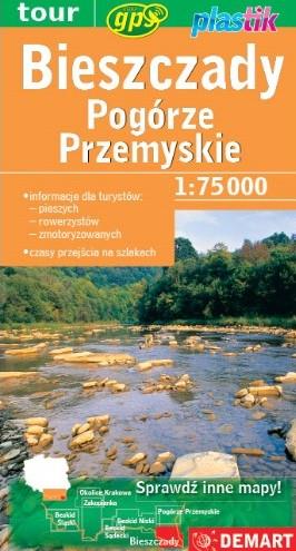 Bieszczady oraz Pogórze Przemyskie to mapa turystyczna plastikowa, dwustronna, w skali 1:75 000. Mapa ta zwiera informator krajoznawczy dla turystów pieszych, rowerowych, zmotoryzowanych oraz czasy przejścia na szlakach turystycznych.