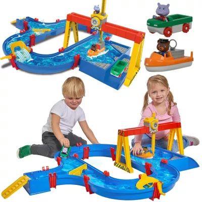 Tor wodny Aquaplay Port kontenerowy. W zestawie znajduje się łącznie 37 elementów, z których oprócz kanałów można zbudować m.in. ruchomy dźwig, ramię żurawia czy podjazd. Oprócz elementów niezbędnych do zbudowania wodnego toru w zestawie znajduje się także auto, łódka, figurka hipopotama i figurka misia. Tor oprócz wodnej zabawy, pełni także funkcję edukacyjną - dzięki niemu dzieci dowiedzą się m.in. jak woda może unieść łódkę czy jak woda może się wspinać . Po rozłożeniu tor ma wymiary 104 x 90 x 25 cm. Można go także rozbudować, łącząc z innymi zestawami z serii Aquaplay sprzedawanymi oddzielnie. Zestaw został wykonany z wysokiej jakości plastiku, co zapewni bezpieczeństwo i świetną zabawę na długi czas. wymiary rozłożonego zestawu: 104x90x25 cm zestaw składa się z 37 elementów (w tym auta, łódki i 2 figurek) Uwaga! Produkt nieodpowiedni dla dzieci poniżej 3 roku życia.