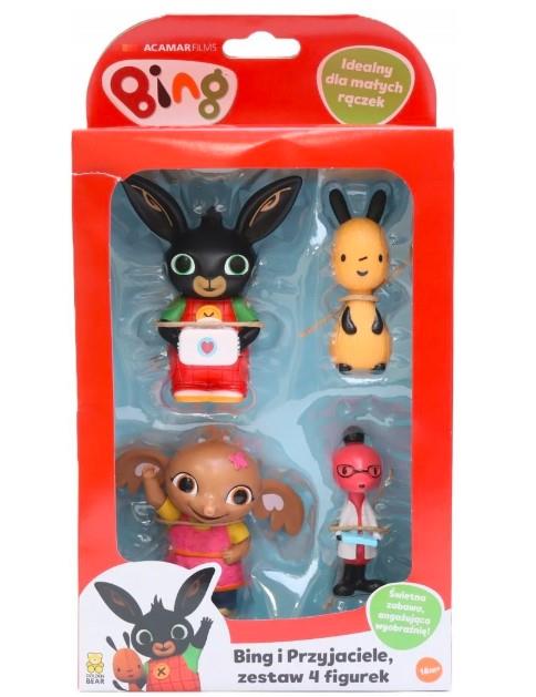 Bing i Przyjaciele, zestaw 4 figurek Molly Sula Bing FlopNiedaleko stąd, tuż za zakrętem, bawimy się z Bingiem i jego przyjaciółmi, czyli bohaterami popularnego serialu Bing o przygodach wesołego króliczka, uwielbianego przez dzieci!