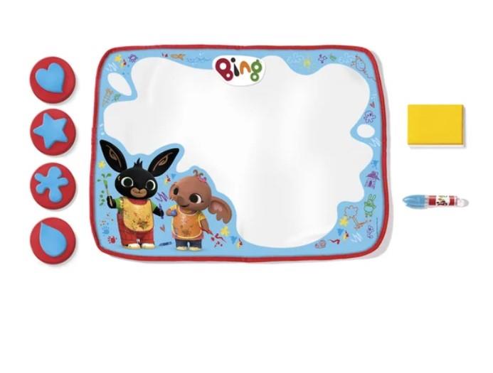 Magiczna mata Waterdoodle ze specjalnym piórem wodnym i stemplami. Dzięki tej macie BING waterdoodle możesz rysować bez końca, bez ryzyka bałaganu lub plam. Napełnij specjalny długopis czystą wodą z kranu i narysuj niebieskie linie na macie. Lub użyj dołączonych szablonów, aby uzyskać dodatkową radość z rysowania. Rysunek zniknie, gdy woda wyschnie, dzięki czemu za każdym razem można tworzyć nowe kreacje.