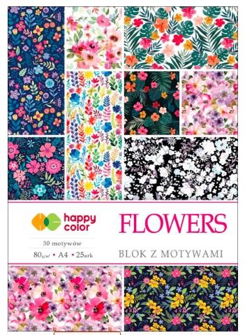 Blok z motywami, Flowers, A4, Happy Color