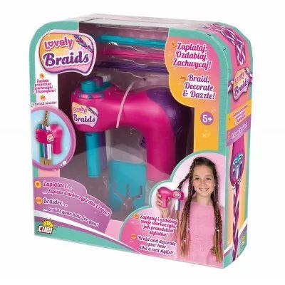Zaplatacz warkoczyków zestaw z akcesoriami. Stwórz swój własny domowy salon fryzjerski. Zaplataj i ozdabiaj swoje warkoczyki, jak prawdziwa stylistka. Zaplatacz robi prawdziwe warkoczyki z trzech kosmyków. Po prostu umieść kosmyki włosów w trzech rurkach, za pomocą separatora i haczyków. Następnie pozwól zaplataczowi wykonać pracę. Trzymaj przycisk i obserwuj, jak zaplata Twoje włosy. Stylizuj fryzurę dodając kolorowe gumki do włosów i zapinki, możesz też wpleść w warkoczyki kolorowe wstążki.