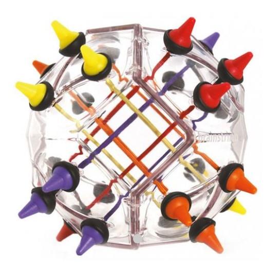 Jak grać:1. Przesuń kołki wzdłuż torów, aby zmienić położenie sznurków.2. Podczas przesuwania, węzeł będzie formował się w środku łamigłówki.3. Rozwiąż węzeł tak, aby wszystkie sznurki były proste i przechodziły przez środek łamigłówki.