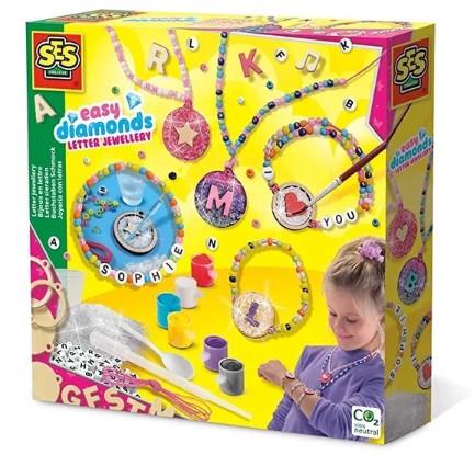 Zestaw bransoletek z literkami to: sposób na kreatywne spędzenie czasu, coś dla dzieci uwielbiających tworzenie własnej biżuterii, rozwój zdolności manualnych i koncentracji na zadaniu, świetna zabawa z holenderską marką SES Creative. Zestaw zawiera: drewniane literki i zawieszki szklane koraliki, 200 koralików z literkami, diamentowy proszek, elastyczny sznurek, miarkę, pipetkę, 6 kol. farbek plakatowych, pędzelek,Produkt może mieć uszkodzone opakowanie lub naruszoną plombę fabryczną opakowania. Uszkodzenia nie wpływają na funkcjonalność produktu.