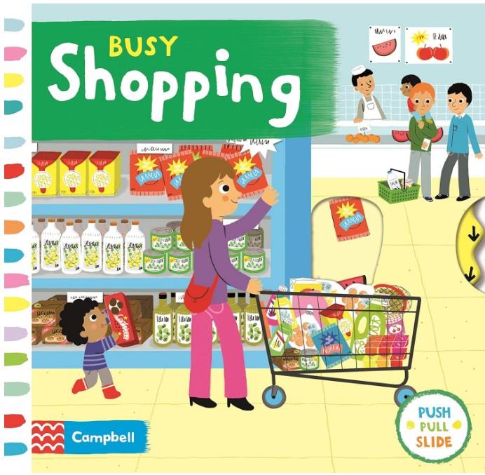 Pop to the shops with Busy Shopping! Young children will have fun pulling and turning the tabs as they read the rhyming story.