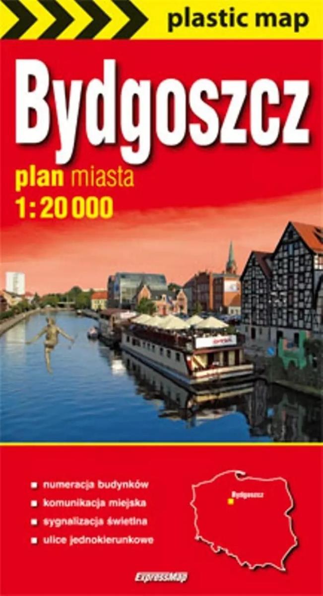Dwustronnie foliowany, trwały plan Bydgoszczy* szczegółowy rysunek zabudowy wraz z numeracją budynków wzdłuż ulic i na osiedlach* linie autobusowe i tramwajowe wraz z przystankami* sygnalizacja świetlna, ulice jednokierunkowe, parkingi* bogata treść turystyczna, m.in.: zabytki, muzea, szlaki turystyczne, hotele i inne istotne obiekty* budynki użyteczności publicznej, centra handlowe* szczegółowe plan centrum w skali 1:10 000 (1 cm ? 100 m)* informator teleadresowy* skorowidz ulic