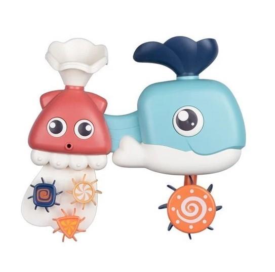 Kreatywna zabawka do zabawy w wodzie gwarantuje mnóstwo radości podczas kąpieli. Młynki wodne, deszczownica oraz łopatka dają możliwość zabawy na wiele sposobów. Za pomocą łopatki dziecko nalewa wodę do otworów zlokalizowanych w górnej części zabawki i obserwuje jak pod wpływem wody poruszają się jej ruchome elementy. Różnorodne kształty oraz intensywne kolory bawią i uczą, stymulując rozwój psycho-motoryczny malca. Na dodatek zabawka doskonale rozwiązuje problem rodziców, których pociecha boi się wody i nie lubi kąpieli. To pewny sposób na oswajanie dziecka z wodą po przez zabawę. Zabawka została wyposażona w praktyczne przyssawki umożliwiające montaż na ścianie lub na ściance wanny.