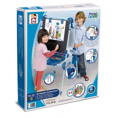 Tablica magnetyczna Kombi 2w1 52112. Tablica magnetyczna marki Chicos zapewni dziecku zabawę na dwa sposoby: może służyć jako magnetyczna tablica na literki i cyferki oraz do rysowania specjalnymi zmywalnymi markerami lub jako tablica do pisania kredą. Jest łatwa do utrzymania w czystości, składania i rozkładania w zależności od potrzeb. Fantastyczny komplet, w którym znajdują się: przybory do rysowania, zestaw magnetycznych literek i cyferek, podręczna tacka i pojemnik na przybory. Płyta ma bardzo praktyczne klipsy, dzięki czemu dziecko może trzymać kartki papieru. Można go dostosować do różnych wysokości.