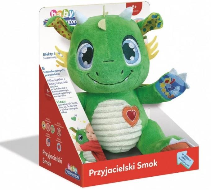Clementoni, maskotka interaktywna Przyjacielski SmokClementoni to włoska firma, założona w 1963 roku, specjalizująca się w produkcji zabawek, gier edukacyjnych, puzzli i eksperymentów naukowych. Clementoni zdobyła uznanie na międzynarodowym rynku dzięki wysokiej jakości swoich produktów oraz innowacyjnemu podejściu do edukacji i rozwoju dzieci. Clementoni oferuje szeroki wybór interaktywnych zabawek i gier, które angażują dzieci w różne aspekty nauki, rozwijają logiczne myślenie, kreatywność, zdolności manualne oraz umiejętności społeczne.