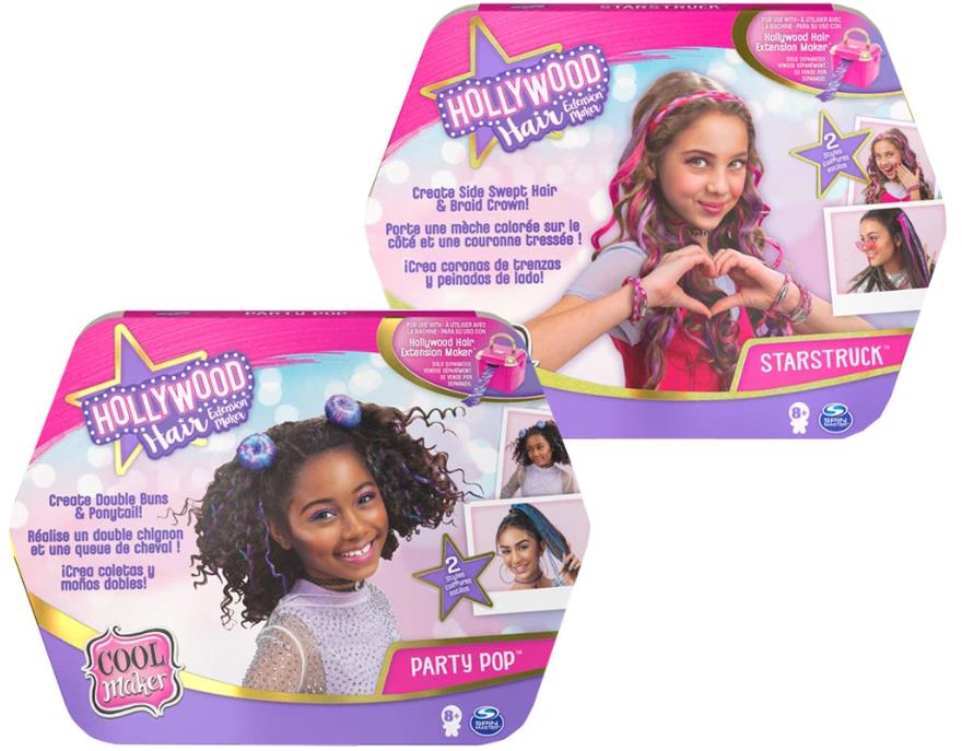 Zaprojektuj i stwórz dwa nowe style z zestawem uzupełniającym Party Pop lub Cool Maker Hollywood Hair Extension Maker!