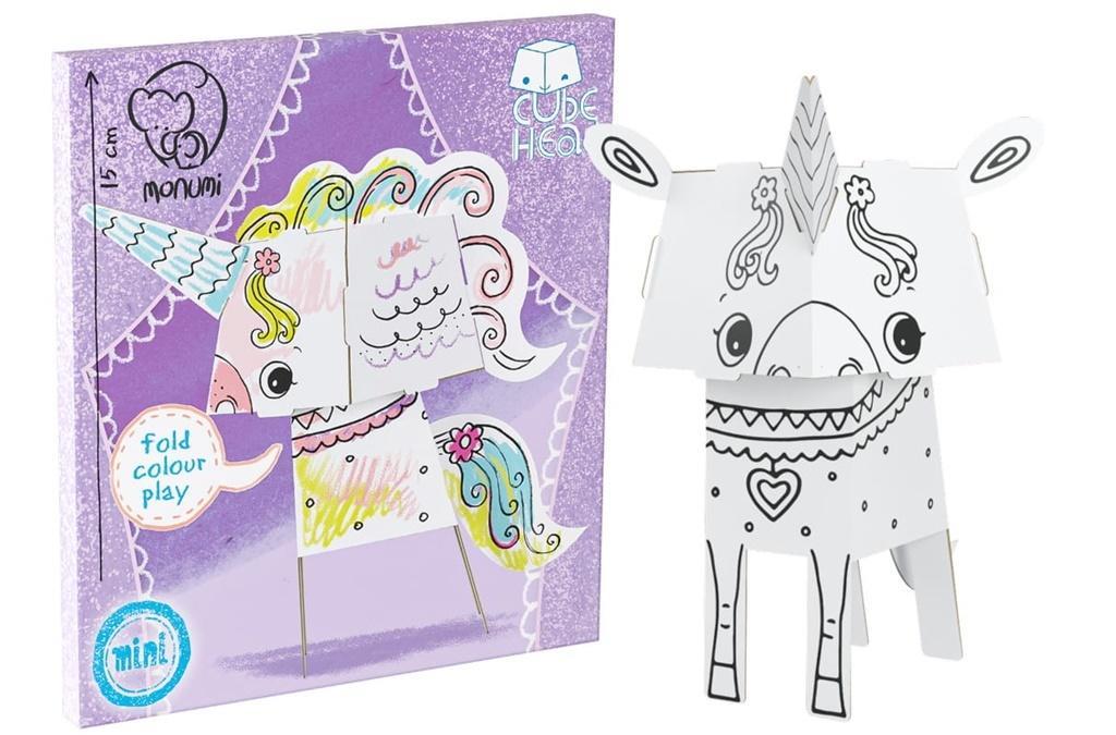 Cube head. Jednorożec. Złóż i pokoloruj Cube head