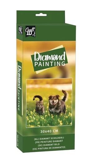 Diamentowy obraz - Kot i pies, 30x40cm Produkt może mieć uszkodzone opakowanie lub naruszoną plombę fabryczną opakowania.