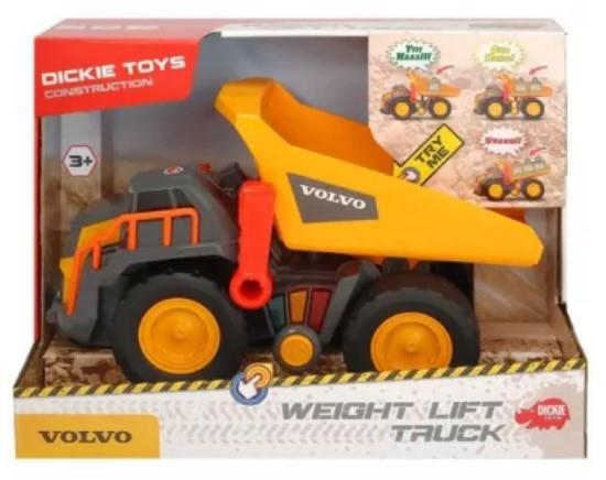 Zawartość i cechy zestawu:? wywrotka Volvo,? efekty świetlne i dźwiękowe,? reaguje na 3 różne obciążenia poprzez włączenie światła i dźwięk ostrzegawczy (zielone - lekki ładunek, żółte - średni, czerwone - zbyt ciężki),? ruchome kółka,? ruchoma wywrotka,? plastikowy pojazd,? bez napędu,? licencja Volvo,? w kolekcji koparka lub wywrotka - sprzedawane oddzielnie.