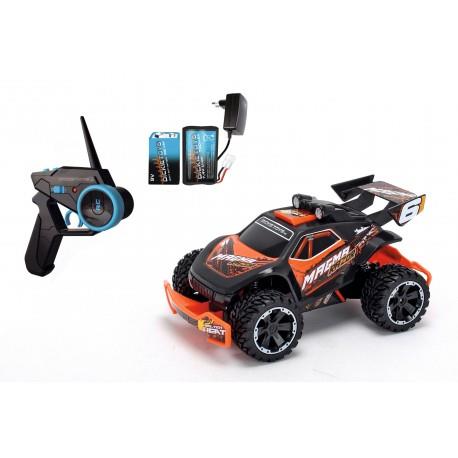 Samochód Magma Razor 1119083 to wersja terenowego samochodu z wyjątkowym sportowym designem. Auto posiada funkcje, które dodają zabawie niezwykłych emocji. Samochód sterowany jest za pomocą prostego w obsłudze pilota. Porusza się do przodu, w prawo i lewo, do tyłu, w prawo i lewo, zatrzymuje się. Auto osiąga maksymalną prędkość na poziomie aż 20 km/h.
