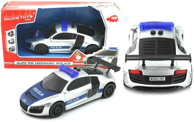 Radiowóz Audi R8 został stworzony przez cieszącą się dużym zainteresowaniem firmę Dickie Toys należącą do Simba Dickie Group, która od lat projektuje wysokiej jakości zabawki.