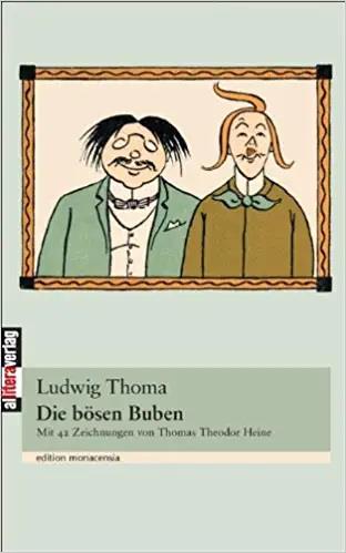 Wie alle Werke Thomas ist diese brillante, mit Humor und Satire gewürzte Max und Moritz-Persiflage geprägt von scharfen Angriffen gegen politischen Klerikalismus und bigotte Scheinheiligkeit. Kompromisslos prangert Thoma Schwäche und Dummheit des spießbürgerlichen Milieus und das chauvinistische und großmäulige Preußentum mit seinem Pickelhauben-Militarismus an. Nach dem Erscheinen der "Bösen Buben" kam es aufgrund der vielen offenen und versteckten politischen und personellen Anspielungen zu Beleidigungsklagen und Vertriebsschwierigkeiten - die jetzt vorliegende Neuauflage ist die erste überhaupt.