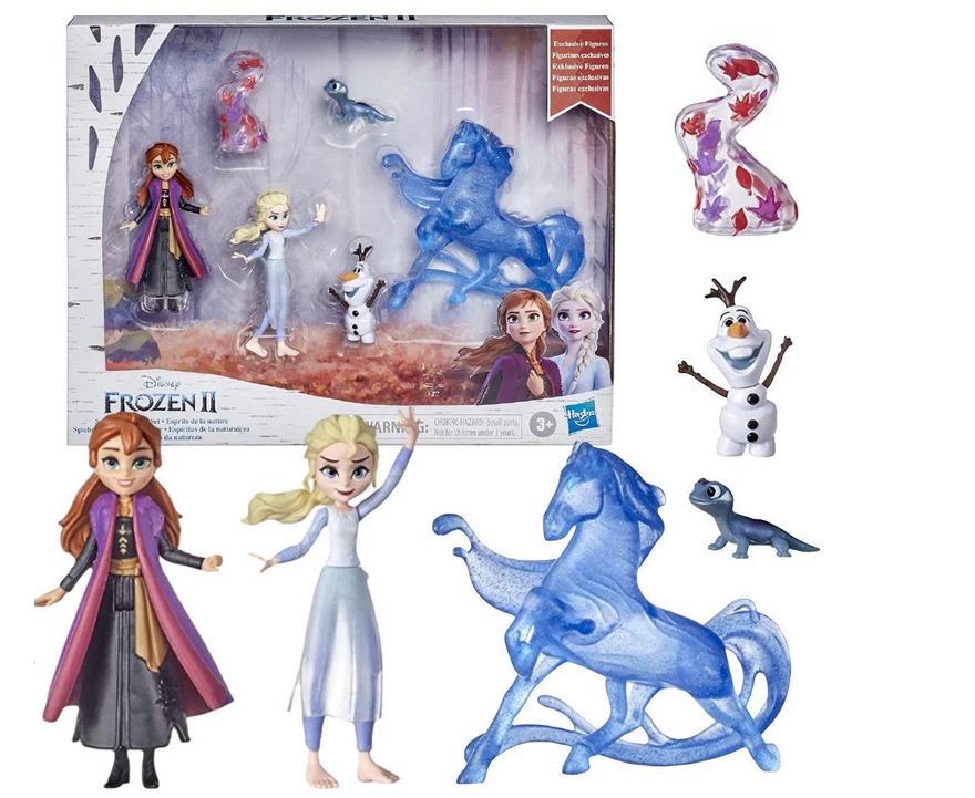 Kraina Lodu II (Frozen II) to cześć bajki, w której Anna i Elsa podróżują do Zaczarowanego lasu. Duchy Natury właśnie sprowadzają Elsę do Zaczarowanego Lasu. Figurki, które mamy w zestawie idealnie odwzorowują wraz ze szczegółami postacie z bajki. Zawartość zestawu: Figurka Anny figurka Elsy figurka Olafa, figurka ducha płomieni - Salamandry Bruni figurka ducha wody Nokk- pod postacią konia figurka ducha wiatru - GaleWysokość figurek Anny i Elsy: ok. 9,5 cmWysokość konia Nokk: ok. 11 cmWiek: 3+