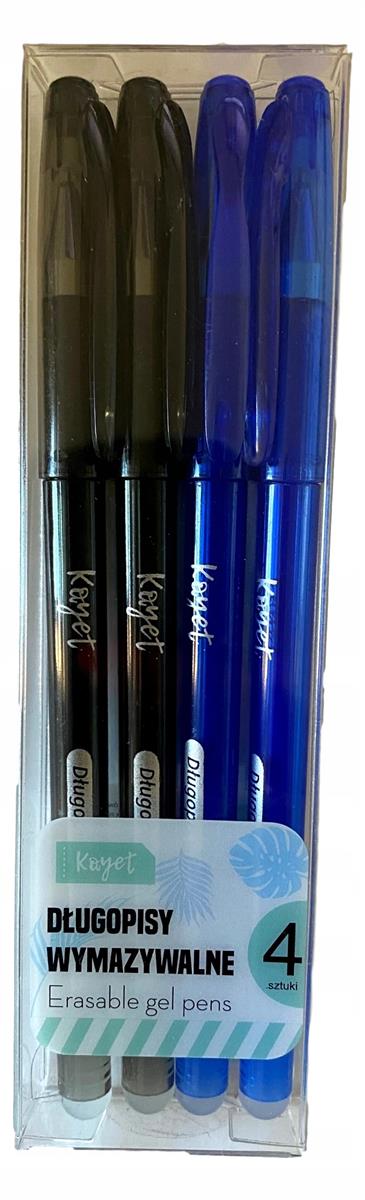 DŁUGOPISY WYMAZYWALNE KAYET, 4 SZT CZARNY+NIEBIESK