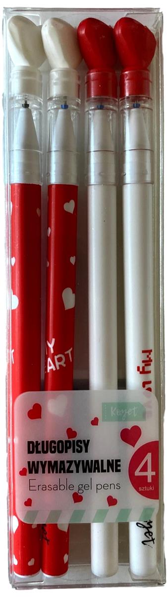 DŁUGOPISY WYMAZYWALNE SERCE OZDOBNE 4 SZT
