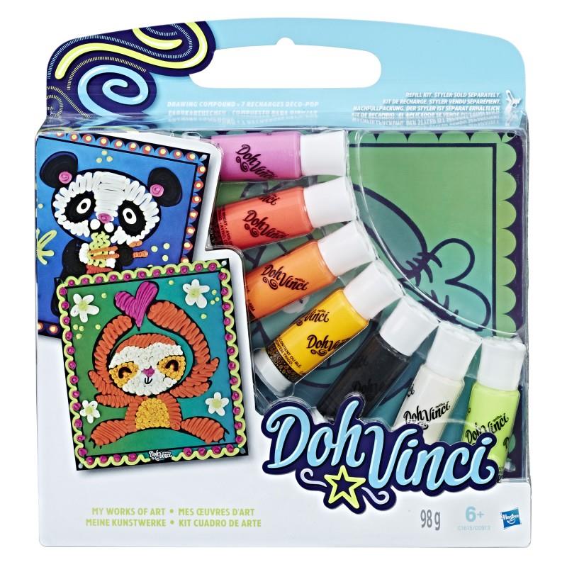 Artystyczne tablice Zwierzęta C1615. Kolejna propozycja zabawy z masą plastyczną Doh Vinci. Dwa szablony ze zwierzątkami oraz 7 kolorowych tub zagwarantują wspaniałą plastyczną i kreatywną zabawę. Zestaw nie zawiera stylizatora.