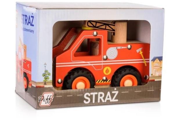 Drewniany pojazd ratunkowy rozbudzi ciekawość i chęć zabawy każdego dziecka. Wóz strażacki malowany bezpieczną na dzieci farbą, opony wykonane są z miękkiej gumy. Produkt przeznaczony dla dzieci powyżej 3. roku życia.