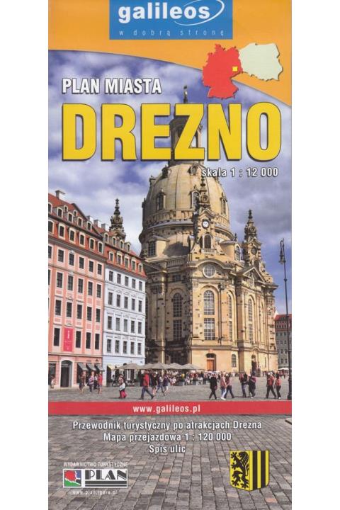 Aktualny plan Drezna obejmujący centrum i jego najbliższe okolice. Na planie miasta wyszczególniono atrakcje turystyczne, które zostały opisane na rewersie. Dodatkowo plan posiada mapę dojazdową okolic Drezna z zaznaczonymi zjazdami z autostrad.