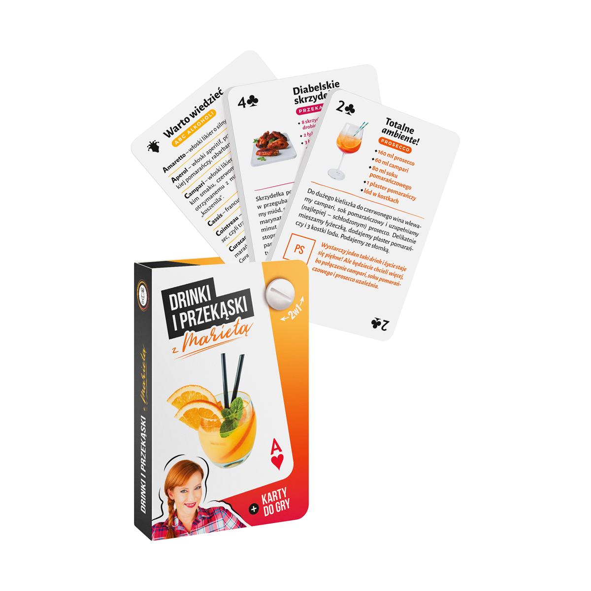 Marieta Marecka, znana felietonistka, autorka książek kulinarnych i prezenterka TV, tym razem zaskakuje nietypową publikacją. „Drinki i przekąski z Marietą” to niezbędny element każdej „domówki”. 52 karty do gry z przepisami. Można zrobić drinka i przekąskę, a do tego wspólnie zagrać w karty. Doskonały przepis na udaną imprezę.