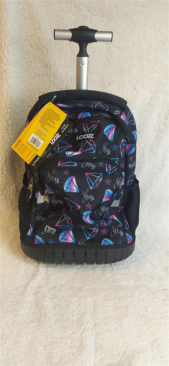 PLECAK SZKOLNY NA KÓŁKACH WALIZKA LOOZZProdukt marki St. Majewski dwie pojemne komory dwie duże, elastyczne boczne kieszenie z siatki szerokie i miękkie szelki z regulacją długości oraz możliwością ich schowania wzmocniony i stabilizujący spód dwustopniowa regulacja wysokości rączki ergonomiczny uchwyt wysokiej jakości system jezdny z wytrzymałymi oraz szybko obracającymi się kółkami elementy odblaskowe materiał wodoodporny kolor dominujący: czarnyEgzemplarze powystawowe - opakowania mogą zawierac zbite rogi, rozdarcia, przybrudzenia, rysy.