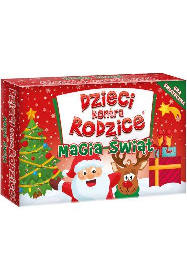 eśli chcesz spędzić czas wesoło i radośnie w rodzinnym gronie podczas doskonałej zabawy, to koniecznie kup grę planszową Dzieci Kontra Rodzice. Magia Świąt !Świąteczna gra planszowa, która utrzymana została w humorystycznym stylu i wesołej stylistyce. Rozgrywka polega na odpowiadaniu na pytania dotyczące świąt Bożego Narodzenia. W ten sposób można podkreślić magiczną atmosferę, a przy okazji poznać wiele interesujących ciekawostek. Pytania dotyczą prostych rzeczy, które jednak mogą sprawić problemy nie tylko dzieciom, ale również rodzicom. Czym jeździ Święty Mikołaj? Ile jest potraw na wigilijnym stole? Czego trzeba szukać na niebie? Z czym są świąteczne pierogi? To dopiero początek wspaniałej zabawy! Całość polega na przeprowadzeniu edukacyjnej rywalizacji między dziećmi a rodzicami. Do gry wymagane są przynajmniej dwie osoby. Nic nie stoi również na przeszkodzie, aby młodzi gracze walczyli o zwycięstwo między sobą.
