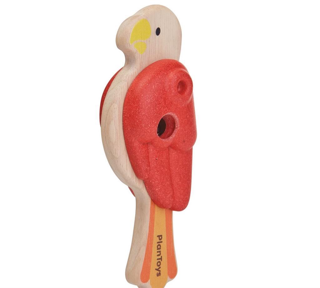 abawka muzyczna dla dzieci, dzwoneczek. Wyjątkowo prosta w obsłudze pierwsza zabawka muzyczna dla maluszka. W środku drewnianej papugi ukryto dzwoneczek, podczas poruszania wydaje charakterystyczny dźwięk. Zabawka uczy rytmiki, może również okazać się pomocą w ćwiczeniach związanych z małą motoryką. W serii znajduje się również klekotka - paw oraz kastaniet - sówka. Można niewielkim kosztem stworzyć świetną sekcję rytmiczną w dziecięcej orkiestrze :) Dzwoneczek - papuga jest idealna dla małych rączek muzyków. Tworzenie rytmu przez dzieci, wyzwoli wiele radości, wrażliwości muzycznej, inwencji twórczej. To doskonałe ćwiczenia małej motoryki, koordynacji ruchów niezbędnych do dalszego rozwoju. Wszystkie drewniane zabawki marki Plan Toys? są wytworzone z naturalnie wysuszonego drewna kauczukowego (podczas suszenia nie są używane żadne substancje chemiczne). Są połączone z klejem bez formaldehydu i pokryte nietoksycznymi, ekologicznymi barwnikami na bazie wody. Zabawki są trwałe, doskonałej jakości, będą służyć niezwykle długo! Instrument należy do linii PlanPreschool, która szczególny nacisk kładzie na połączenie zabawy z nauką. Starannie zaprojektowane instrumenty muzyczne, gry, układanki, klocki i zabawki manipulacyjne zapewniają wszechstronny rozwój dziecka już od najmłodszych lat. Firma Plan Toys? należy do światowej czołówki pod względem produkcji ekologicznych zabawek. Jako pierwsza zaczęła wykorzystywać do produkcji naturalne, ponownie przetworzone drewno kauczukowe. Dba także o to, aby stosowane farby, kleje, jak również opakowania zabawek oraz same metody ich produkcji były w jak największym stopniu przyjazne środowisku.