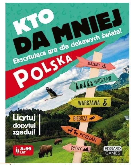 Kto da mniej Polska to świetna i emocjonująca gra karciana dla całej rodziny, w której można sprawdzić swoją wiedzę na temat polskiej przyrody, historii, geografii oraz kultury. Podczas rozgrywki liczy się spryt, odwaga i umiejętność wyciągania wniosków. Zadaniem każdego z graczy jest odgadnięcie jakie polskie miejsca oraz zabytki ukrywają się na kartach, przy jednocześnie jak najmniejszej liczbie zadanych pytań.