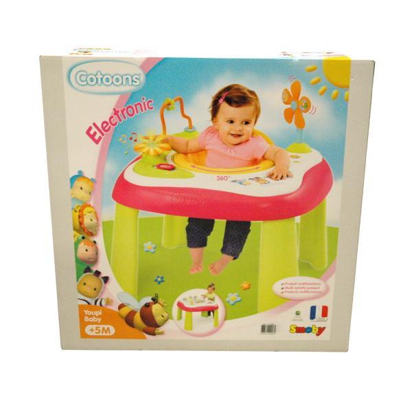 Różowy elektroniczny stolik ze światłem i dźwiękiem to wspaniała propozycja zabawy dla maluchów. Stolik posiada siedzisko w centralnej części blatu, które doskonale nadaje sie dla mniejszych dzieci (siedzisko można zdjąć i wyprać). Istnieje możliwosc zakrycia siedzonka, tworząc pełną przestrzeń do zabawy. Zabawka rozwijają zręczność, intryguje efektami dźwiękowymi i świetlnymi. To wyjątkowe centrum zawiera także przeplatankę, wiatraczek - kwiatek, grający kwiatek.