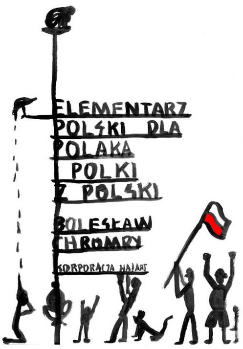 „Polskę trudno jest zrozumieć. A co dopiero wytłumaczyć na obrazkach. Bolesław Chromry podjął się heroicznej próby narysowania i opisania najważniejszego kraju na świecie. Elementarz to encyklopedia wiedzy, którą niby wszyscy posiadamy, ale próbujemy o niej zapomnieć i zamieść pod dywan. Chromry wyciąga te trupy z szafy i sadza je przy stole nakrytym biało-czerwoną flagą i ironią, która jest niezbędna, żeby w Polsce przetrwać.Kochany Boże, dziękuję Ci za Bolesława Chromrego, którego ręką sterujesz”. Magdalena Grzebałkowska