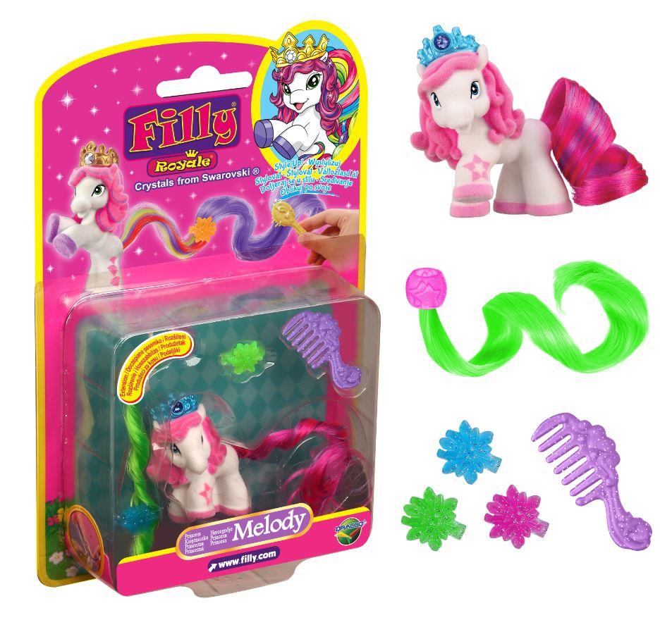 Baw się i stylizuj nowe Filly Royale! Tego jeszcze nie było! Teraz mają przepiękne, kolorowe ogonki, które możesz czesać i stylizować! 21 figurek do kolekcji! Różne kolory kryształków Swarovskiego na koronach!