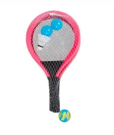 Nie możesz się zdecydować czy wolisz Badmintona, Squasha czy Tenis? Dzięki MEGA CREATIVE możesz spróbować swoich sił w każdej z gier i zdecydować, w czym czujesz się lepiej albo po prostu, uniknąć nudy i zagrać we wszystkie te gry! W zestawie znajdują się: 2 rakietki, 2 piłki oraz 1 lotka. Rakietka posiada elastyczną siatkę wykonaną z materiału. Zestaw wykonany z plastiku, materiału oraz gąbki. Całość zapakowana w siatkę. Wymiary opakowania: 50 x 27,5 x 5 cm Wiek: 3+