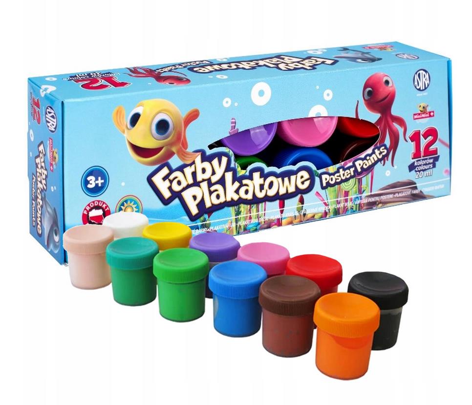 Farby plakatowe 12 kolorów 20 ml - Mini Mini