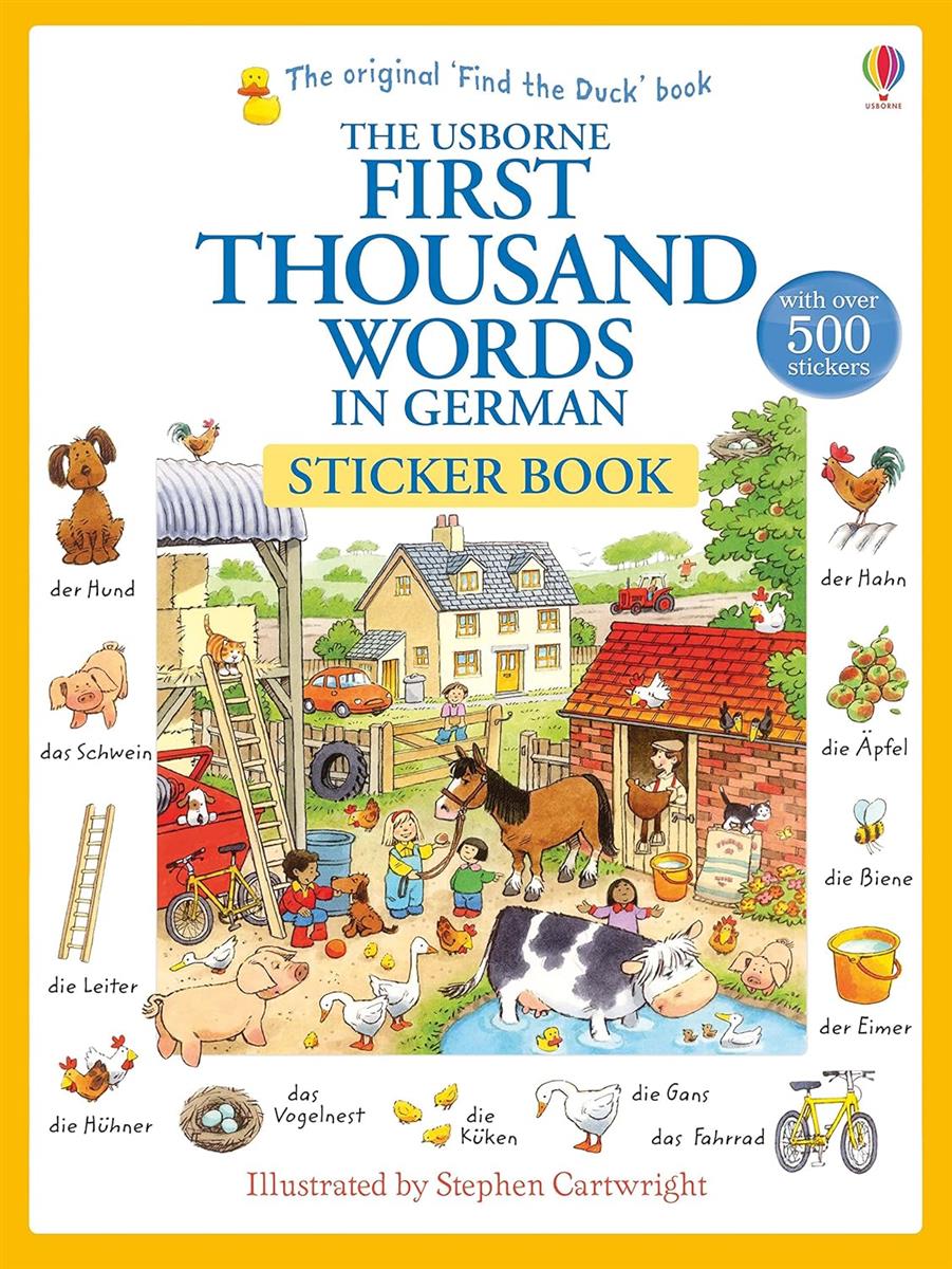 The classic bi-lingual German/English word book, illustrated by Stephen Cartwright. A thousand everyday words illustrated with busy scenes and labelled pictures to help children learn key German vocabulary. Stickers add an extra interactive element, which aids learning.