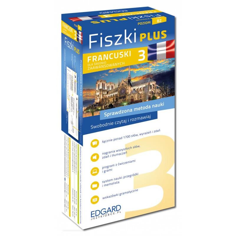 Fiszki Plus. Francuski dla średnio zaawansowanych 3 (B2) to pakiet będący częścią rozbudowanego systemu nauki, dzięki któremu szybko i skutecznie nauczysz się słownictwa na każdym poziomie zaawansowania. Każdy zestaw ?Fiszek Plus to starannie przygotowany materiał, wysokiej jakości nagrania wymowy wraz z programem komputerowym, memolistą i grami językowymi. Z ?Fiszkami Plus nie tylko zapamiętujesz słówka, lecz także poznajesz słownictwo w kontekście, uczysz się nieregularnych form oraz popularnych zwrotów językowych. Od dziś nauka języka stanie się przyjemnością! ? Ucz się ponad 1700 słów, wyrażeń i zdań ? poznaj użycie gotowe wzorce komunikacyjne, utrwal reguły gramatyczne.? Poznaj prawidłowa wymowę. Słuchaj nagrań wszystkich słówek i zdań oraz ich tłumaczeń.? Utrwalaj materiał z ćwiczeniami i grami językowymi dostępnymi w programie (do pobrania).? Ucz się skutecznie dzięki systemowi kolorowych przegródek. Sprawdź na memoliście, które słówka już znasz!? Twórz własne playlisty nagrań wymowy i ucz się mobilnie ? w drodze do pracy lub szkoły!?Fiszki Plus to rozbudowana seria fiszek, ułożona w wygodny system, dzięki któremu sam decydujesz, od którego poziomu zacząć naukę. W ramach serii dostępne są wszystkie trzy poziomy zaawansowania ? początkujący, średnio zaawansowany i zaawansowany.