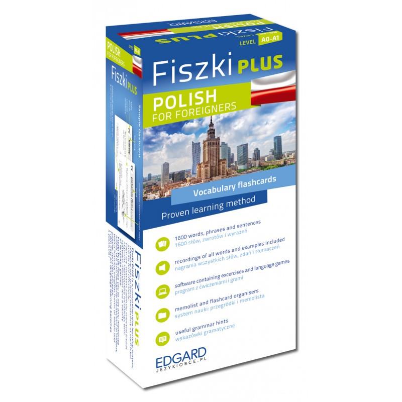 Zestaw Fiszki Plus. Polski dla cudzoziemców zawiera:– łącznie 1600 słów, wyrażeń i zdań,– nagrania wszystkich słówek i zdań oraz ich tłumaczeń – możliwość tworzenia własnych playlist,– program z ćwiczeniami i grami językowymi (do pobrania),– system kolorowych przegródek i memolistę – szybka powtórka słówek,– pomocne wskazówki gramatyczne.Fiszki Plus. Polski dla cudzoziemców (A0-A1) to pakiet będący częścią rozbudowanego systemu nauki, dzięki któremu szybko i skutecznie nauczysz się najważniejszych słów, zwrotów i wyrażeń niezbędnych do swobodnego porozumiewania się po polsku.Każdy zestaw Fiszek Plus to starannie przygotowany materiał, wysokiej jakości nagrania wymowy wraz z programem komputerowym, memolistą i grami językowymi. Z Fiszkami Plus nie tylko zapamiętujesz słówka, lecz także poznajesz słownictwo w kontekście, uczysz się nieregularnych form oraz popularnych zwrotów językowych. Od dziś nauka języka stanie się przyjemnością!